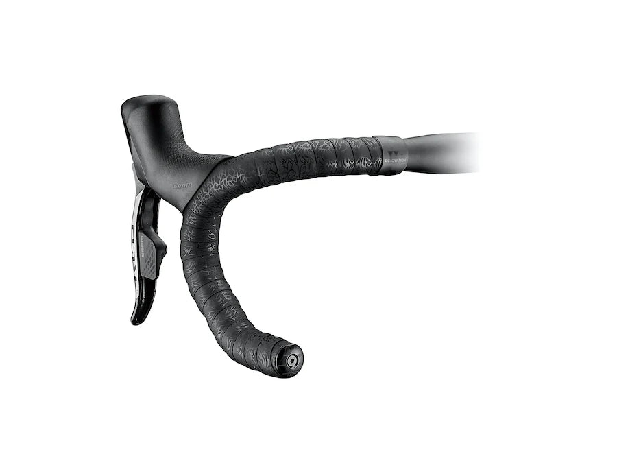 The BALLISTIC series tape focuses on grip, shock absorption and all-condition performance, first and foremost. The heart of the tape is our latest PU compound optimized for top performance. BALLISTIC series bar tape is inherently finished in a satin-like surface that allows for easy hand position transitions yet instantly grips when holding pressure is applied. BALLISTIC series bar tape can also be embellished with spot UV inks for a distinctive graphic pattern sure to compliment any bicycle.