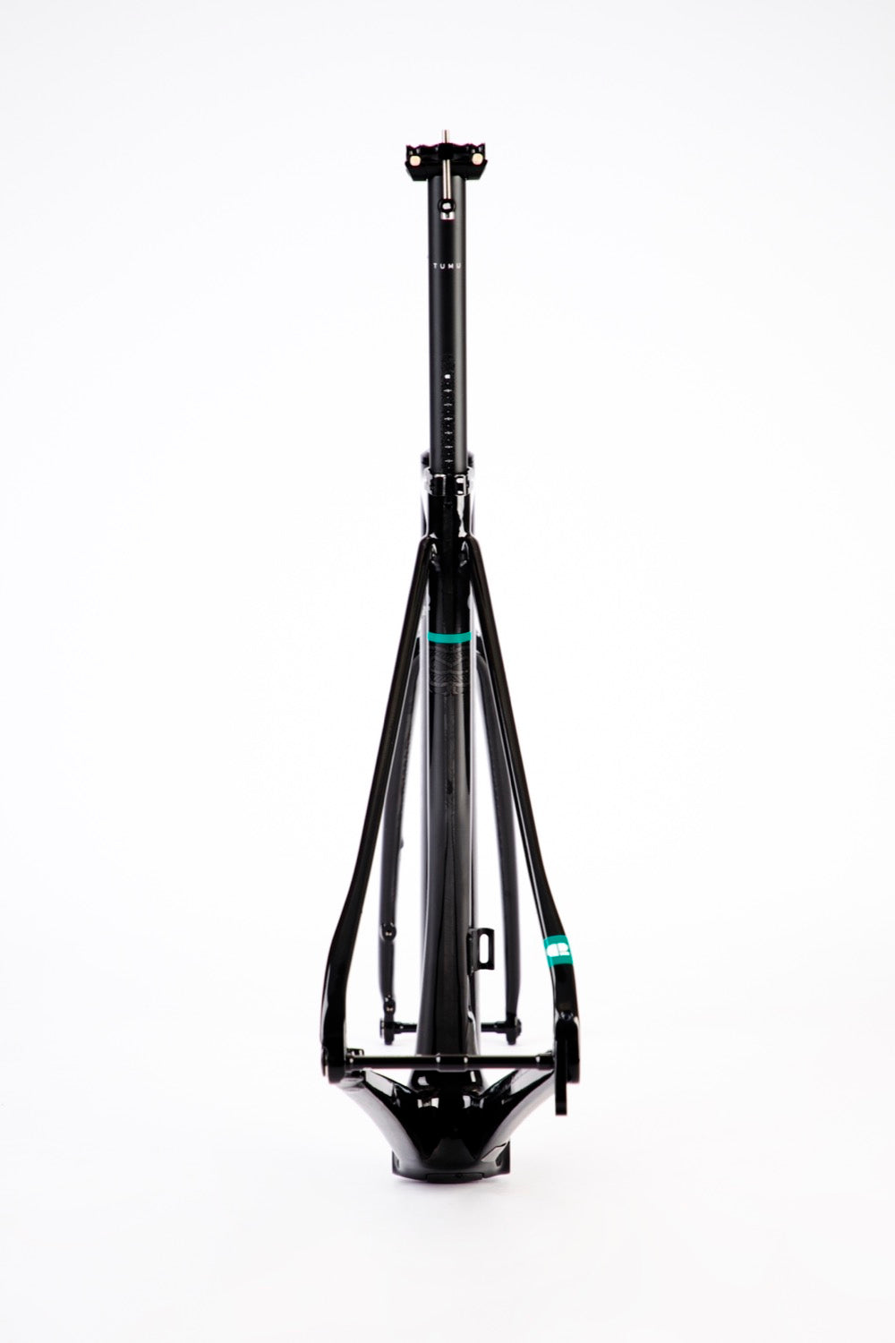 The pencil-thin Seatstays that dampen road vibrations is beautifully merged into the Seattube and Toptube junction that supports our lightweight TUMU 27.2mm seatpost.