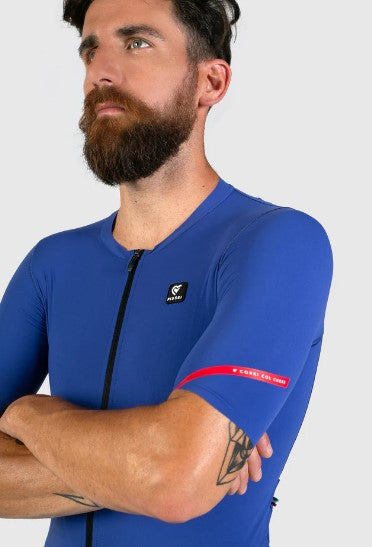 Probably the most comfortable and best fitting jersey you will ever own. Made starting from a single piece of fabric, eliminating unnecessary seams to create an even pressure across the body. Raw cut sleeves finish the garment, providing a seamless connection with the skin.